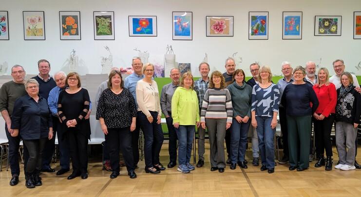 Gut gelaunt und voller Vorfreude präsentierte sich die Gruppe auf dem gemeinsamen Foto zum Kursbeginn, bei dem Anfänger und Wiedereinsteiger gemeinsam die ersten Tanzschritte wagten.
