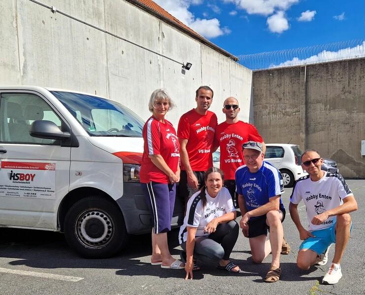 Unser Ausflug für ein Freundschaftsspiel in die Justizvollzugsanstalt Wolfenbüttel stand eigentlich unter einem bösen Omen. Einer Hobbyente plagten nachts zuvor Alpträume was die Aktion anging. Darin präsentierten sich die Gegner martialisch. Das Spielfeld war in einem Verlies untergebracht usw. Zum Glück passierte in der Realität genau das Gegenteil. Bei bestem Sommerwetter trat das Hobbyententeam die Fahrt in die JVA Wolfenbüttel an. Nach dem Passieren etlicher gesicherter Türen, trafen wir auf das Beachvolleyballfeld im Innenhof des Knastes. Die Begegnung mit den Inhaftierten und den Beschäftigten war super harmonisch und interessant. Es konnten an dem Nachmittag mehrere Volleyballbegegnungen ausgetragen werden, die ziemlich ausgeglichen abliefen.